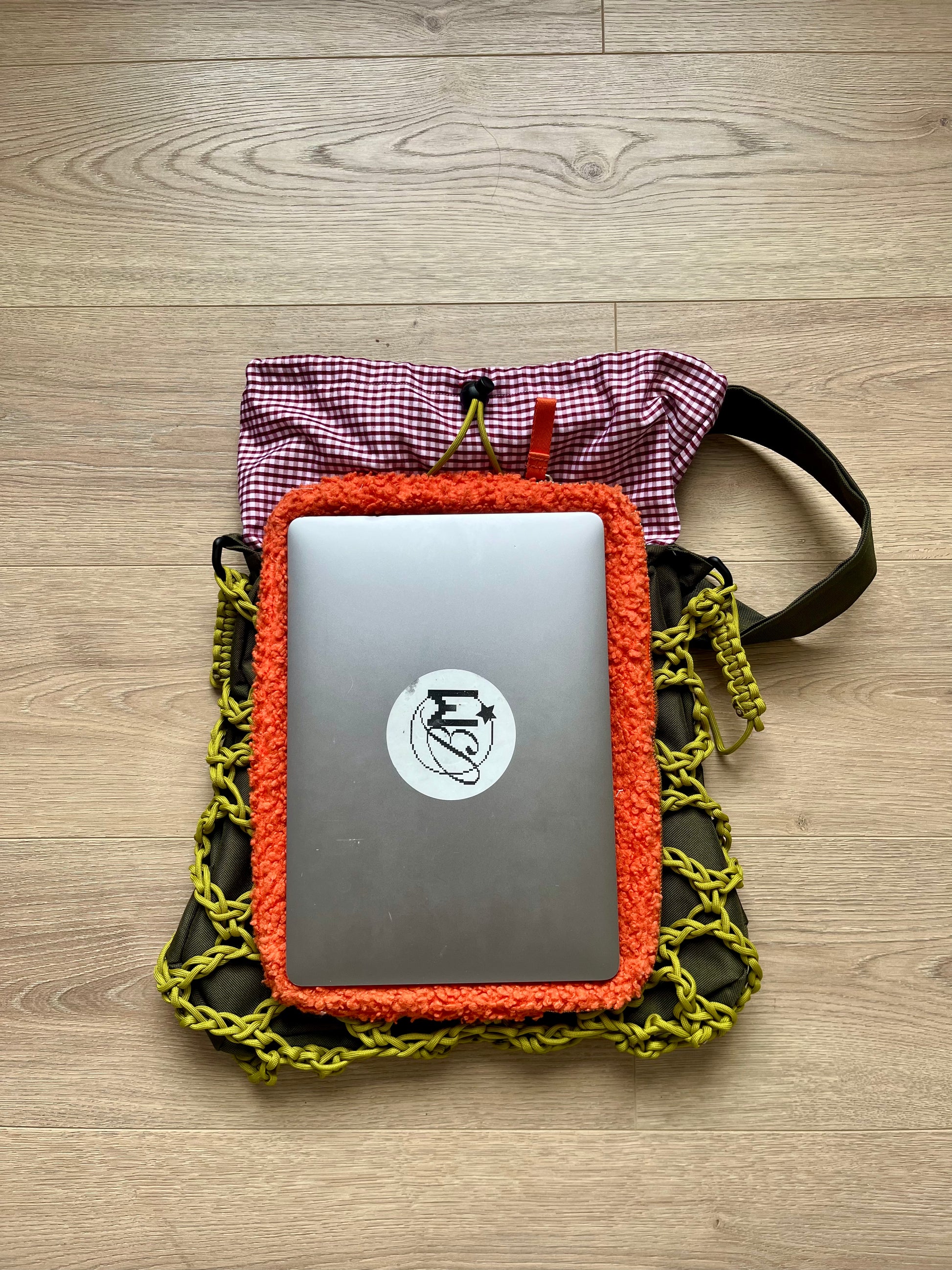 The Nauta Studio Bag can fit a MacBook Air in portrait orientation only. For larger laptops, stay tuned—future drops will include bags designed with extra tech capacity in mind.